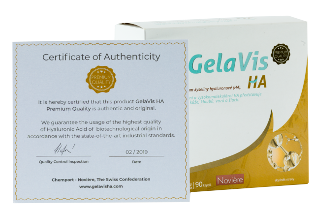 GelaVis HA 90 Premium – švýcarský „bratranec v kapsli“ nejúčinnější světové injekce na léčbu artrózy (kloubní injekce RenehaVis, Švýcarsko). Jako jediný výrobek v kategorii obsahuje duální kyselinu hyaluronovou.