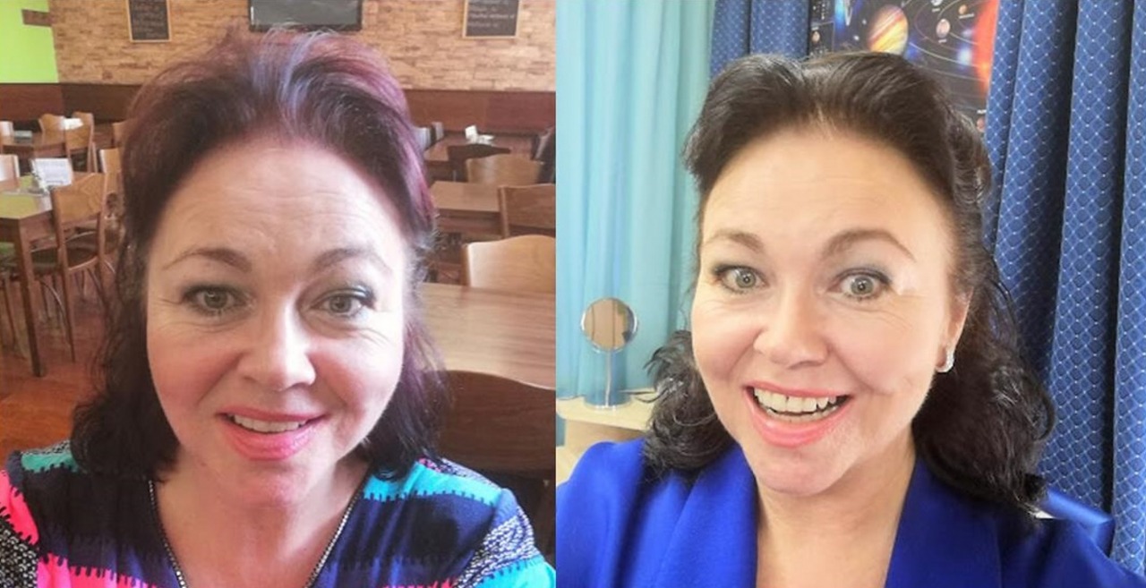 a níže jsem v 53 letech vpravo po 6 měsících užívání tablet A.G.E. Pill a po 5 omlazujících ošetřeních v našem salónu